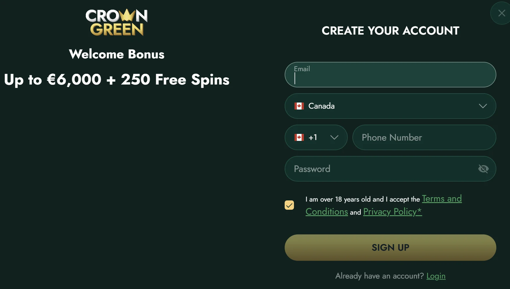 Crowngreen Casino Registration for Canadian Players